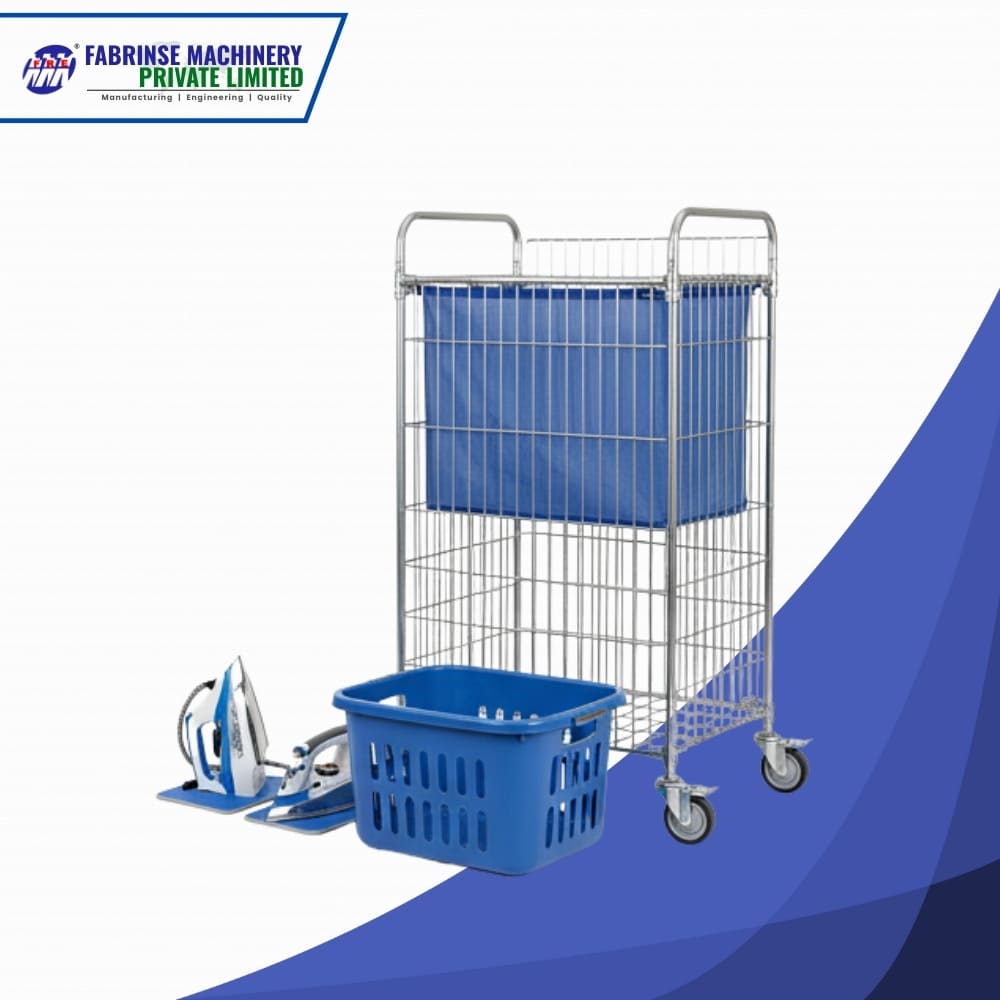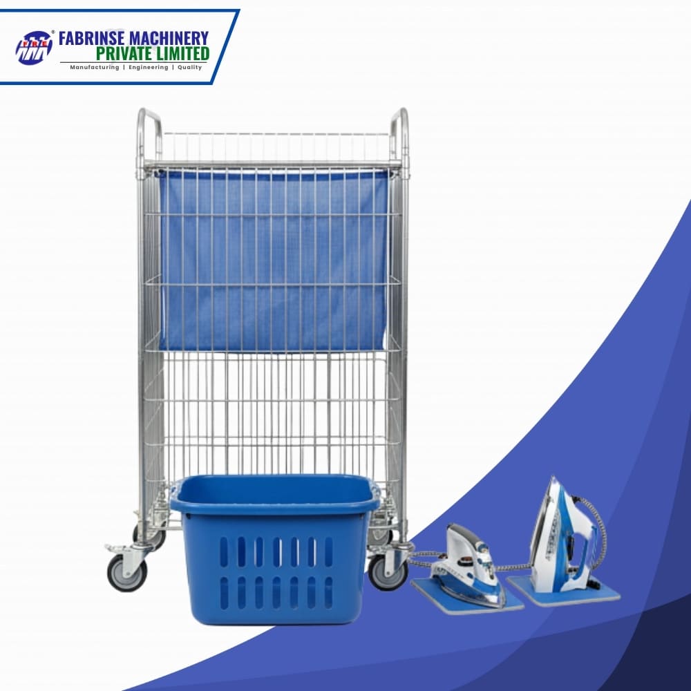 Fabrinse Machinery offers durable Laundry Trolley, basket, and high-performance steam irons—perfect for smooth handling, storage, and garment finishing in industrial laundry operations.